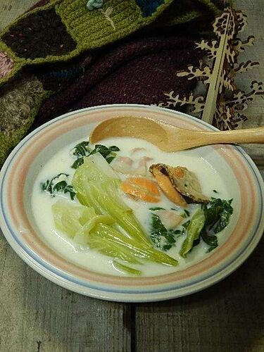 ホッとする味…チンゲン菜のミルクスープ このミルクスープは簡単で、誰にでもすぐにできるので忙しい朝でも作れますが、一番オススメなのは前の晩に作って置いておくこと。一晩置いておくことでグーんと味が良くなってます。