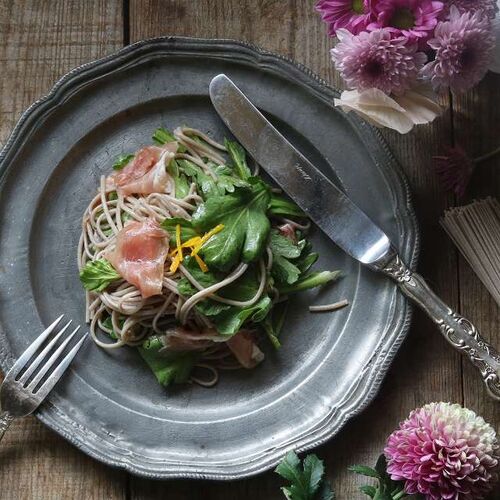 春菊と蕎麦のシンプルサラダ あけまして、おめでとうございます! 昨年は、あちこちで災害に見舞われた年でしたが、今年は平和で災害のない一年でありますよう、心から願っております。 皆さま一人ひとりが笑み多き年となりますように…